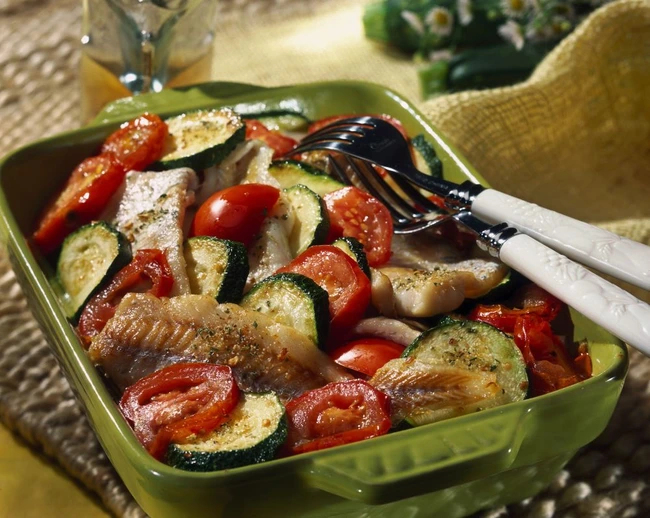 Peşte cu legume la cuptor